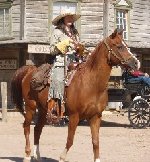Photo Left..Annie & Rhett on the set of Las Vegas New Mexico 1875. Photo Right...Annie with Kevan Costner, Kristina Hagman and young Kaya on the set of Wyatt Earp.